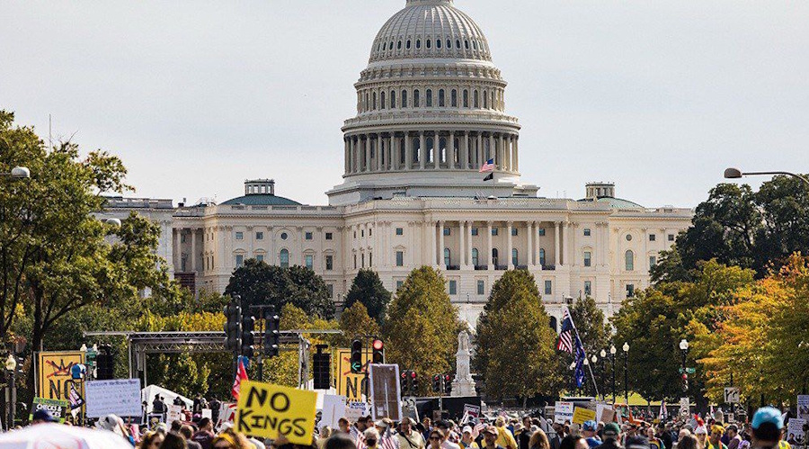 Летом протесты переходили в беспорядки и столкновения. Сегодня акции прошли мирно. Однако республиканские губернаторы Техаса и Вирджинии привели в боеготовность подразделения Национальной гвардии. Дональд Трамп ограничился запуском издевательского видеоролика, демонстрирующего глубочайшее презрение к протестующим. Однако и он, сообразно американской традиции, счёл нужным заверить: «Я не король».