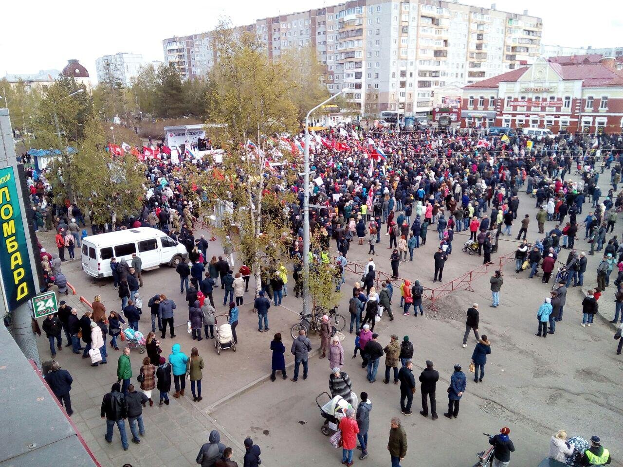 Митинг был согласован горадминистрацией, которая выделила для него сквер возле площади Терёхина в историческом районе Архангельска – Соломбала. Однако, как подчеркивают очевидцы, людей собралось так много что в итоге протестующие заняли всю площадь Терехина. По данным Телеграм-канала «Сила Поморья» собравшихся было не менее о 2,5 тысяч. Несмотря на то, что мероприятие прошло без столкновений с полицией, власти постарались обеспечить собравшимся атмосферу морального подавления. Вся прилегающая территория была заполнена «космонавтами», а для большего устрашения к площади подогнали еще специальный бронеавтомобиль для разгона массовых беспорядков, как пишут очевидцы в социальных сетях – такого жители Архангельска еще не видели.