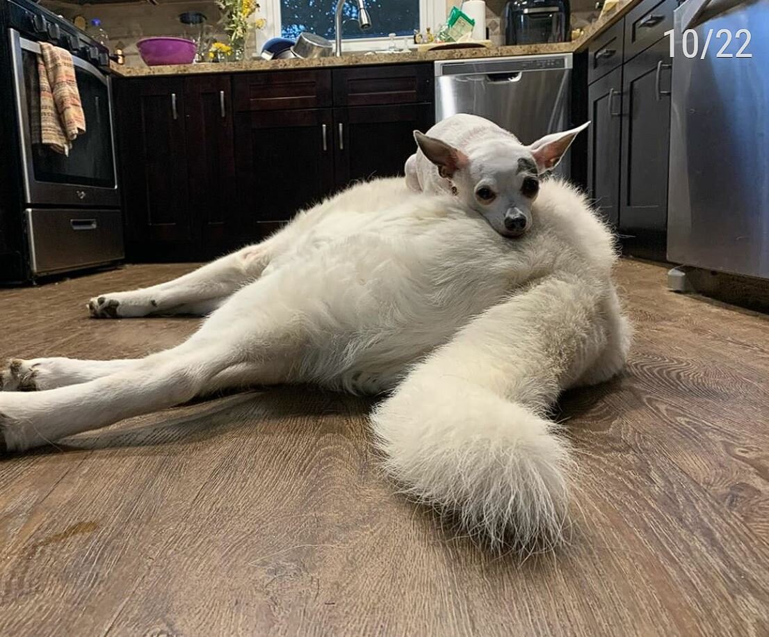 В дружбе между собаками нет ничего нового, хотя более мелкие животные часто избегают более крупных четвероногих. Тем не менее маленькая собачка породы чихуахуа, которую зовут Тим доказывает, что чувствует себя прекрасно в присутствии огромного Бена. У очаровательного дуэта уже есть множество поклонников в Instagram.