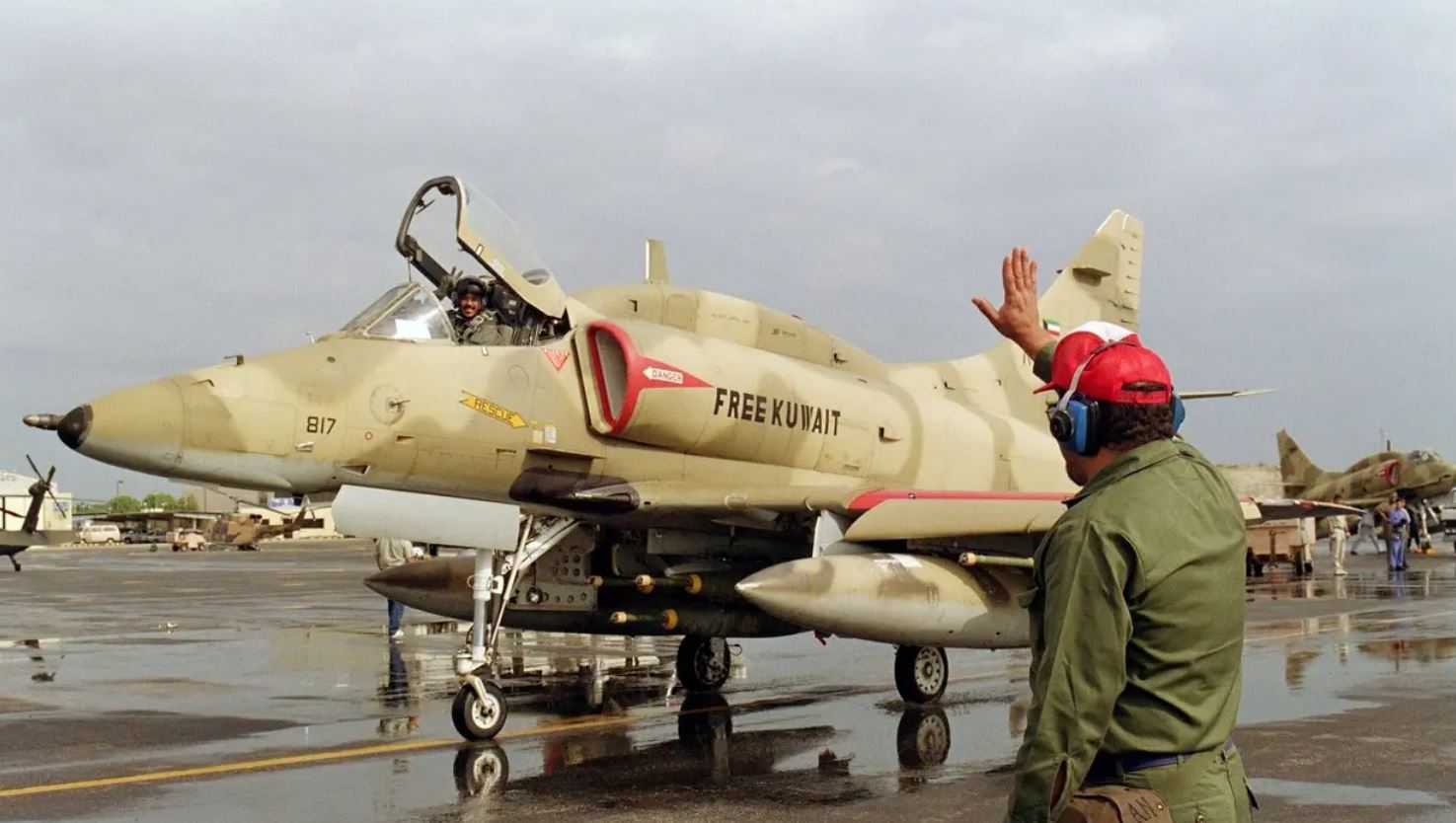 Кувейтские ВВС также приняли участие в боевых действиях. Утром Дуглас A-4KU Skyhawk разбомбил конвой Республиканской гвардии, наступающий на столицу. Наиболее успешными были атаки на вертолеты с десантниками, направляющимися в столицу, но иракские штурмовики Су-22, Су-25 и МиГ-23 разбомбили взлетно-посадочную полосу на базе Аль-Джабир, поэтому самолетам приходилось совершать посадку прямо на шоссе. Около двадцати процентов кувейтских военно-воздушных сил были уничтожены в ходе боевых действий или попали в руки нападавших. Остальные смогли улететь в Саудовскую Аравию.