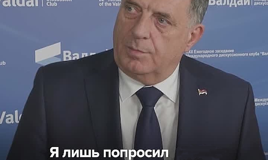 Милорад Додик, отстранённый президент Республики Сербской в составе Боснии и Герцеговины, встретился с главой РФ Владимиром Путиным. Встреча прошла на полях очередного заседания Клуба «Валдай». По словам Додика, он просил Путина «не оставлять Республику Сербскую на откуп Евросоюзу». Униженное прошение Додика вполне сообразно вчерашней установочной речи Путина, проникнутой антиевропейскими мотивами.