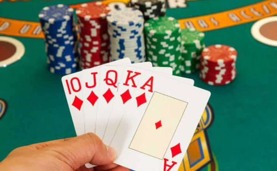 - На столе появились три недостающие той же масти, формирующие вместе с двумя картами игрока последовательность A-K-Q-J-T.
