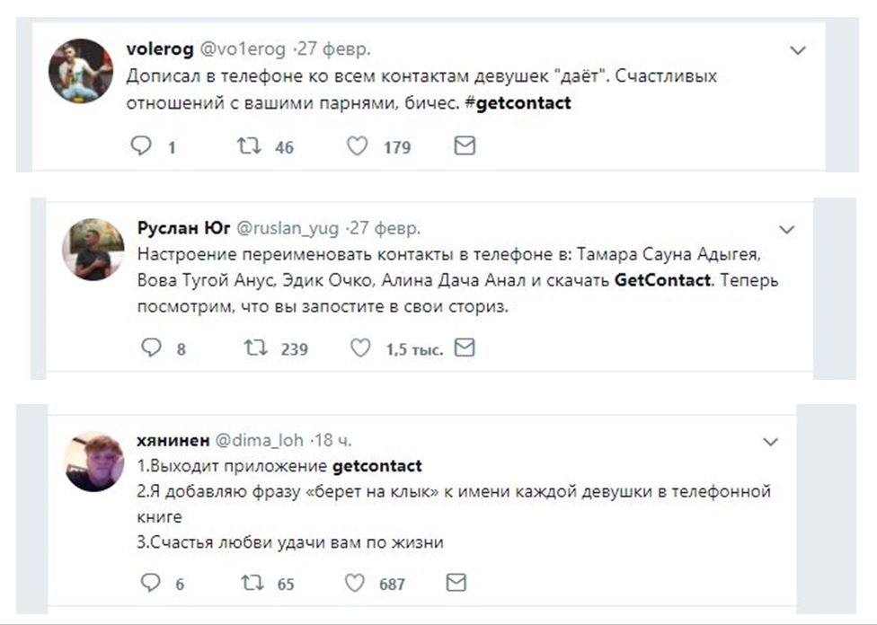 В случае с Get Contact мы имеем возможность наблюдать, как в стремлении удовлетворить праздное любопытство (повторимся: большинство пользователей качали приложение не в надежде защититься от спама, а именно чтобы узнать, как, кто и у кого в телефоне записан) люди выкладывали на всеобщее обозрение не только все данные о себе, включая номера телефонов, аккаунты в соцсетях, адреса электронной почты и пр., но и аналогичную информацию обо всех, чьи контакты представлены в их смартфоне, а это, как было отмечено в одном из приведенных выше комментариев, по меньшей мере, неэтично.