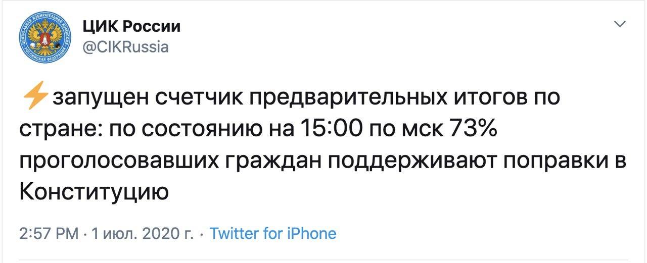 Лидер оппозиции отреагировал на новость о том, что возглавляемый Эллой Памфиловой ЦИК России приступил к подведению итогов пресловутого «всенародного голосования» даже не дождавшись (хотя бы для приличия) официального завершения голосования, которое, как известно, будет длиться до 20 00 по московскому времени.
