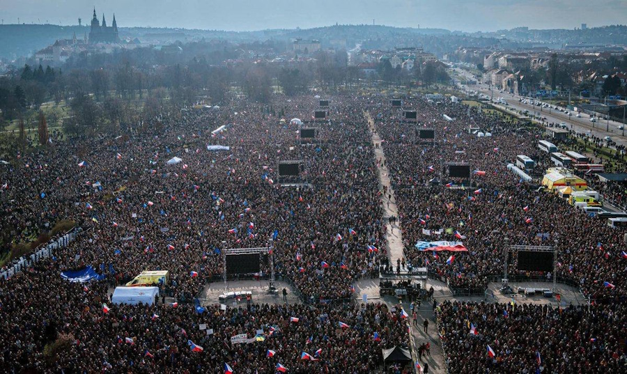 «Не могут смириться с поражением» — пренебрежительная реакция чешского правительства на протестный митинг. Уже третий день. Но премьер Андрей Бабиш не может игнорировать. 250 тысяч человек в пражской долине Летна: «Не позволим украсть наше будущее!» Под флагами Чехии, Евросоюза, НАТО — и Украины. Акция движения «Миллион мгновений за демократию» сравнима разве что с Бархатной революцией 1989-го. Или с пражскими протестами 2019-го — против того же Бабиша в его первое премьерство.