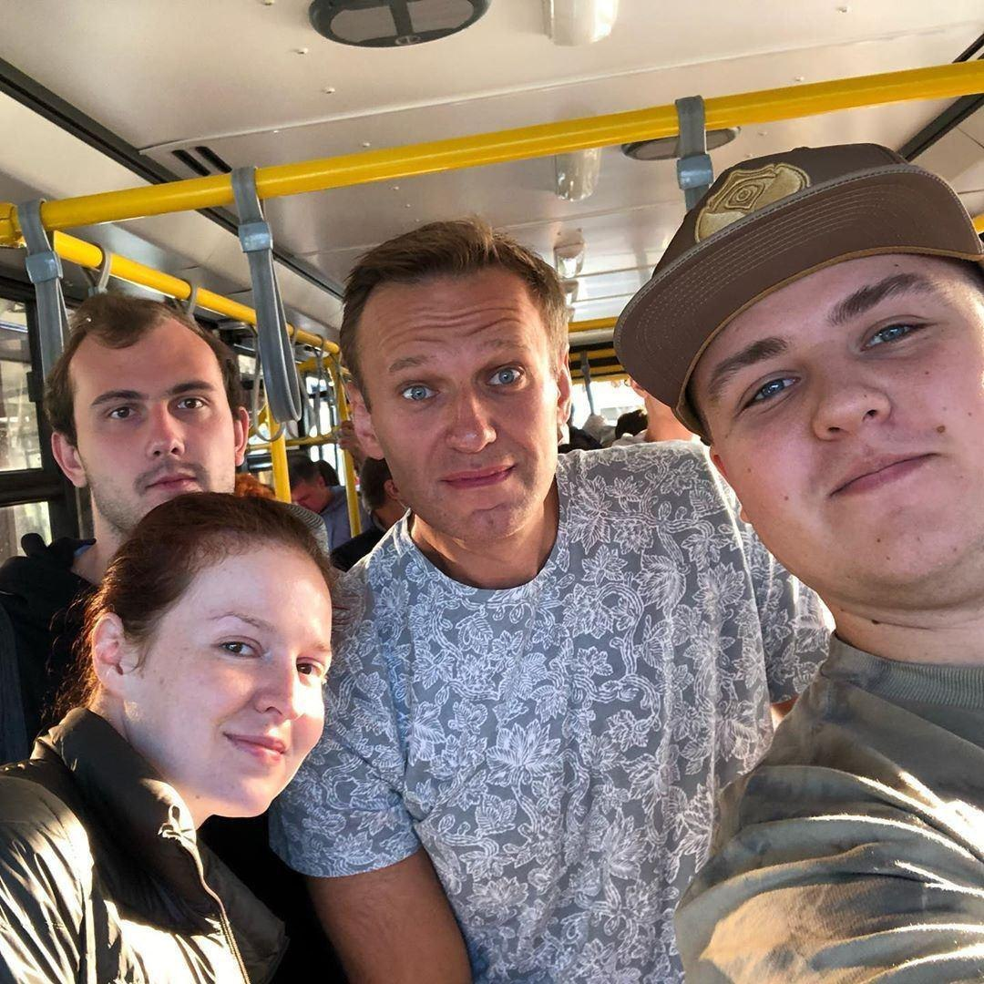 Это фотография Алексея Навального сделана в автобусе аэропорта Томска, который должен доставить Навального в самолёт. До этого он уже выпил чаю в кофейне.Ему резко плохо ему стало позже, уже на борту. Алексей потерял сознание в туалете, самолёт экстренно посадили в Омске, и глава ФБК Навального был госпитализировали. Одно из предположение врачей — отравление психодислептиком, возможно оксибутератом натрия (впоследсвии версия отравления оксибутератом не подтвердилась. — Ред.). Сейчас Алексей находится в коме.