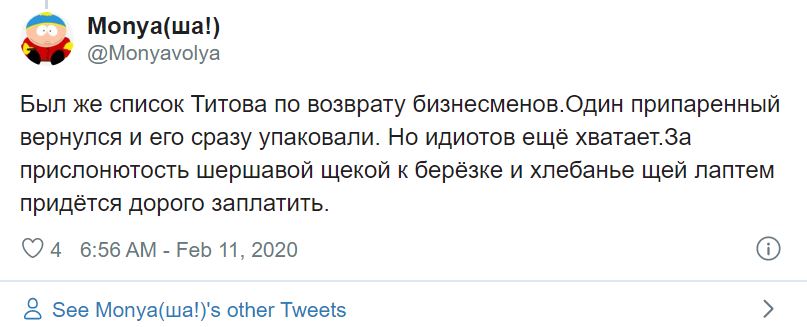 Доверчивых бизнесменов, которых заманивает в Россию бизнес-омбудсмен Борис Титов продолжают сажать одного за другим. Сегодня стало известно о том, что в Москве Хорошевским судом арестован бывший гендиректор «Трансфин-М» Дмитрий Зотов, чья фамилия числилась в пресловутом «списке Титова». Характерно, что он был одним из первых, кто попал в этот список.