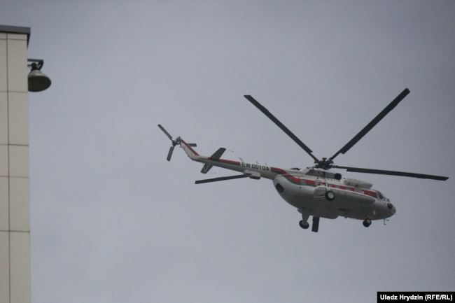Вертолет, на котором прилетел Лукашенко. Фото: svaboda.orgПростояв несколько часов перед оцеплением с наступлением темноты люди стали расходиться, так и не дождавшись появления лидеров протеста.