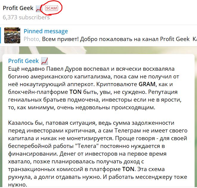 Здесь надо отметить, что канал Profit Geek, в котором появилась эта новость — сложно называть надежным источником информации — рядом с его заголовком красуется лейбл SCAM.