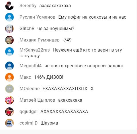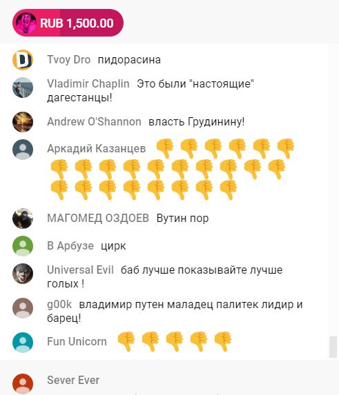 Под трансляцией на канале «Россия-24», сначала было аналогичное соотношение лайков и лайков 1.6 тыс. против 7.7 тысяч дислайков, но потом, судя по всему – на канал был высажен «десант» троллей, который накрутили соотношения до приемлемых для власти соотношений. Однако, судя по всему, троллей на остальные госканалы не хватило: так на трансляции НТВ лишь за время написания этой новости количество лайков выросло до 3,5 тыс., а дислайков до 37 тысяч. В то время как под трансляцией, принадлежащему властям Подмосковья канале 360, мы видим всего 546 лайков против 7 000 дислайков. Нужно ли говорить о том, что и комментарии, под трансляцией на всех каналах – соответствующие: чаще всего комментарии (кроме мата и оскорблений) содержат один единственный вопрос «когда же ты уйдешь».