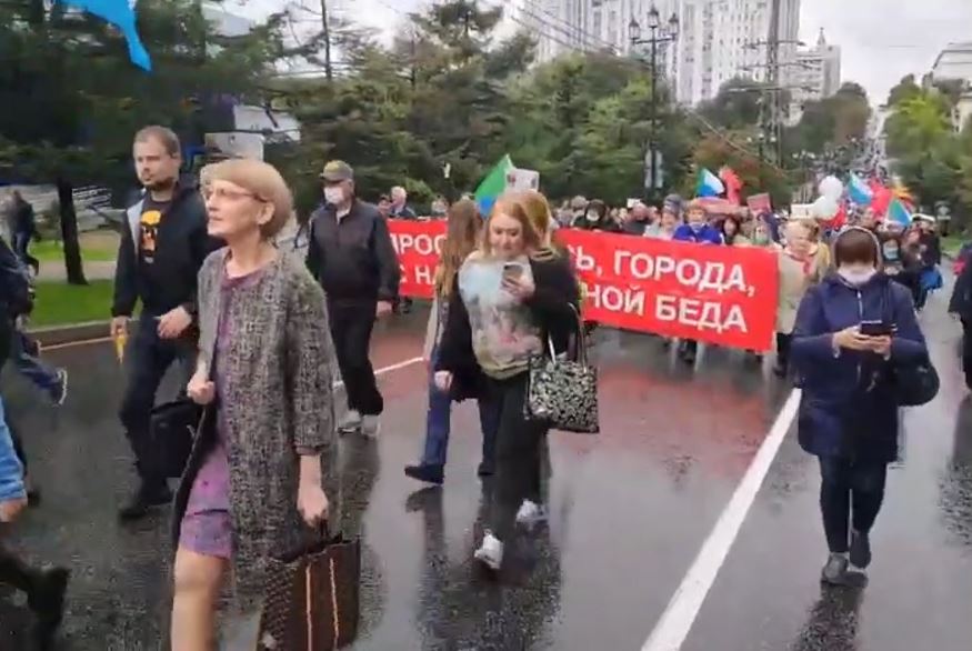 Второй месяц каждую субботу жители Хабаровска выходят на марш протеста против произвола Кремля. Вот и сегодня, несмотря на дождь и пронизывающий ветер, по центральным улицам прошлись тысячи хабаровчан. Лозунги, которые скандировали люди были весьма жесткими. Вот, например, на этом видео люди скандируют: «Путин-старичок, выпей «Новичок»!»