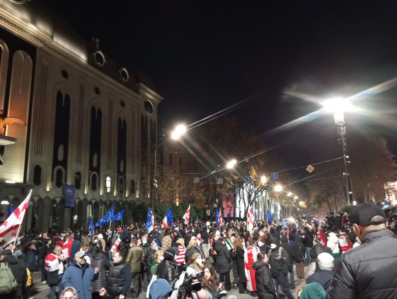 Протесты не утихают. Ареной столкновений минувшей ночью стал проспект Чавчавадзе – на этой линии обороны демонстранты закреплялись, отступив от парламента. Был задержан полицией, но быстро отпущен лидер оппозиционной партии «Гирчи — больше свободы» Зураб Джапаридзе.