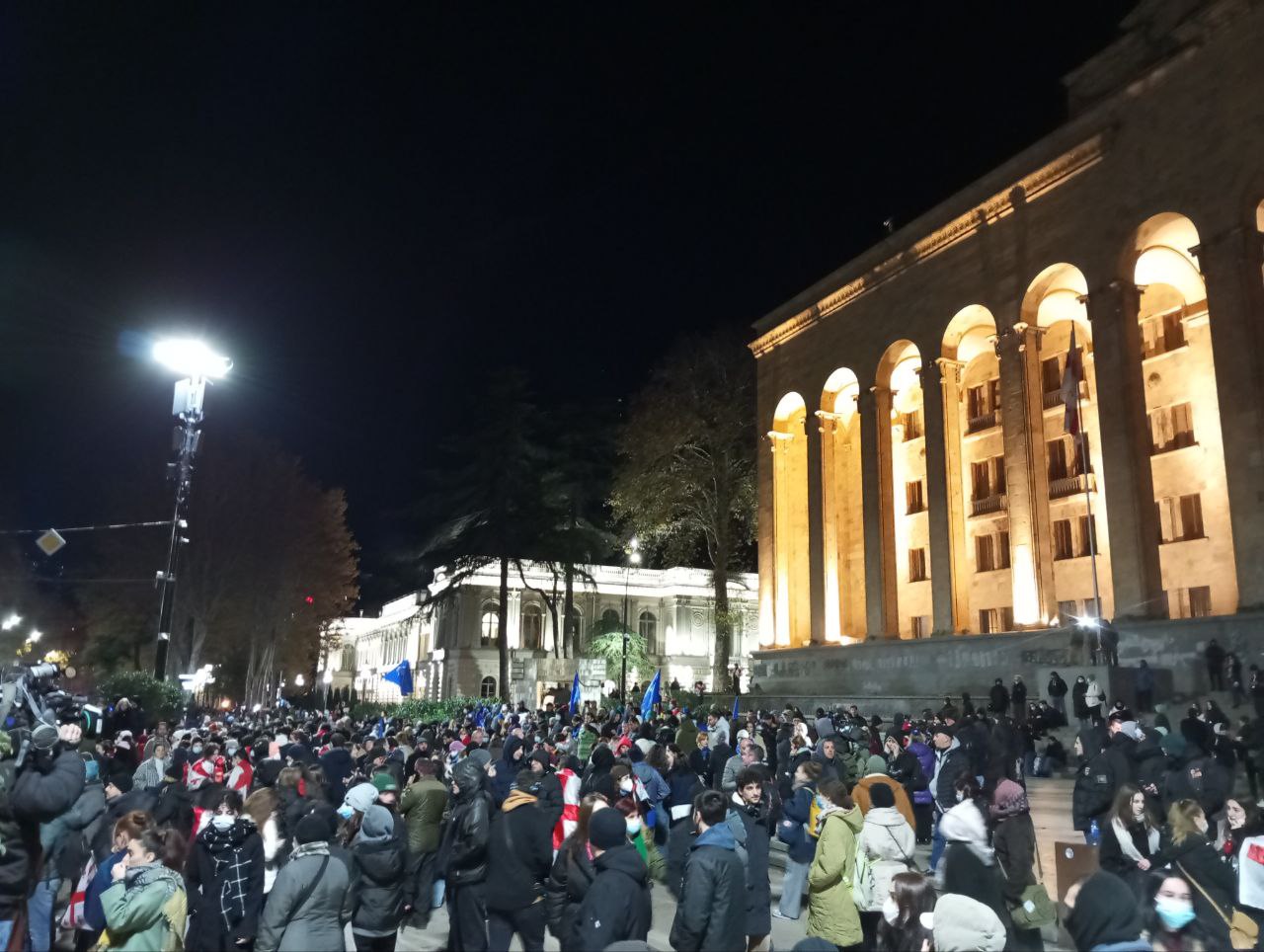 Всё продолжается. Люди в Тбилиси снова идут к парламенту. Спецназ приводит в готовность водомёты…