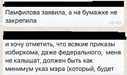 «хочу отметить, что всякие приказы избиркома, даже федерального, меня не калышат, должен быть как минимум указ мэра (который, будет однозначно неконституционен), а по хорошему должен быть федеральный закон устанавливающий такое требование».
